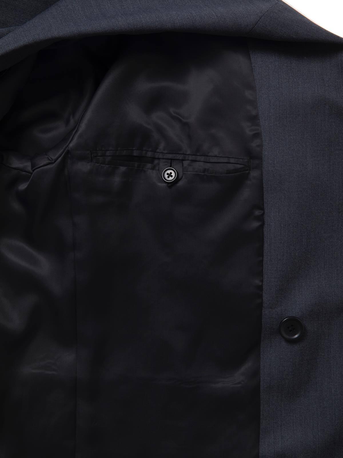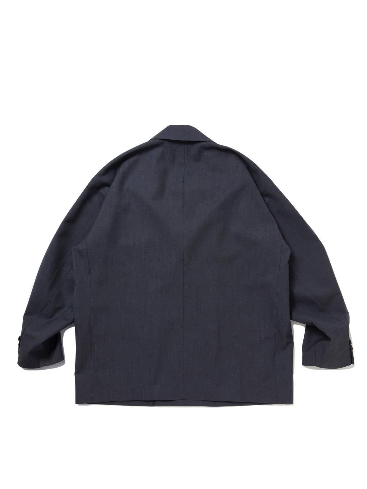 ウール、ポリエステルの混紡糸の高密T/Wサキソニーを使用。クリアな光沢と程よいドレープ性を持つ。表地撥水加工。裏地に肌当たりのいいキュプラツイルを使用。ワイドシルエット