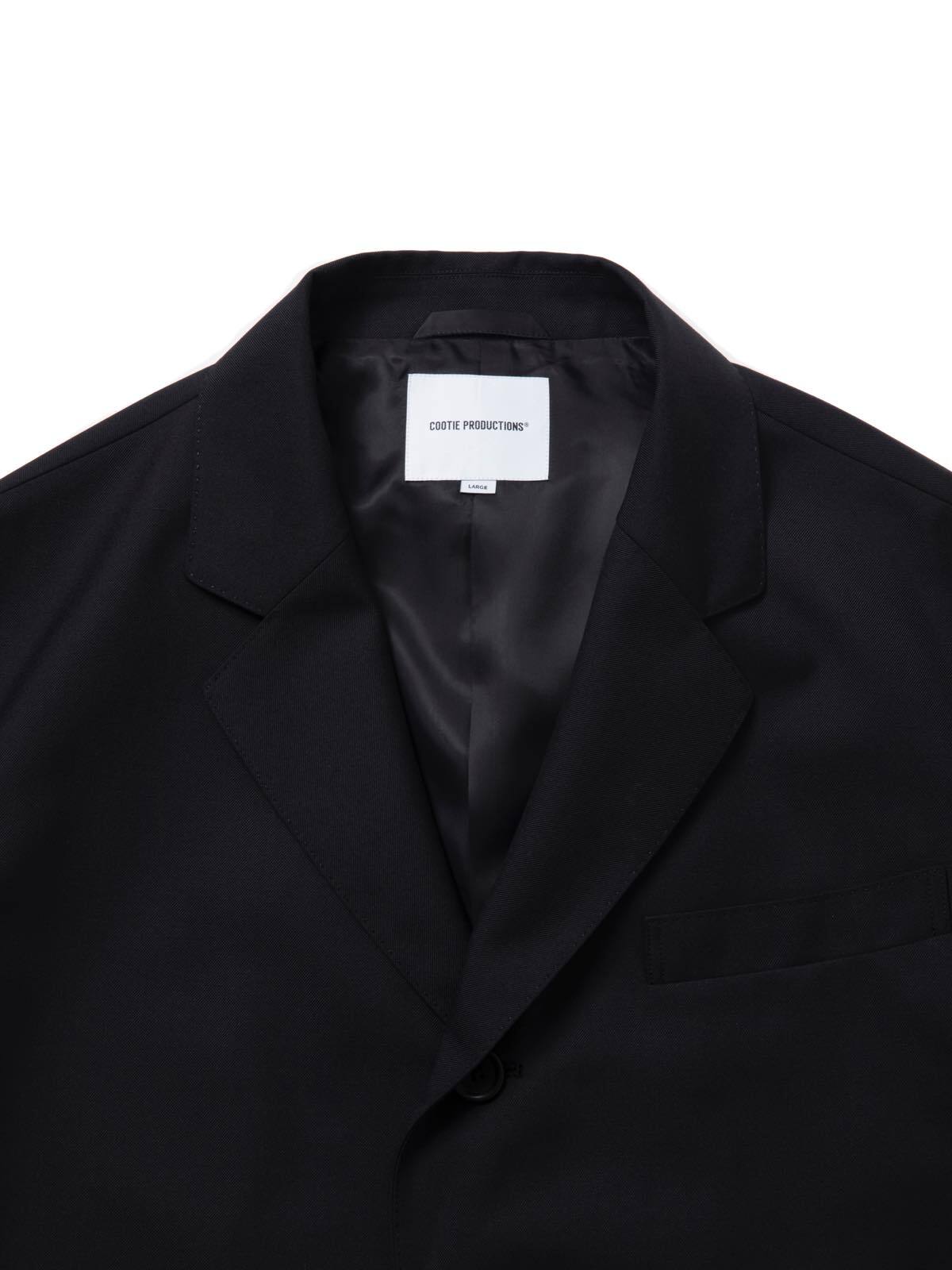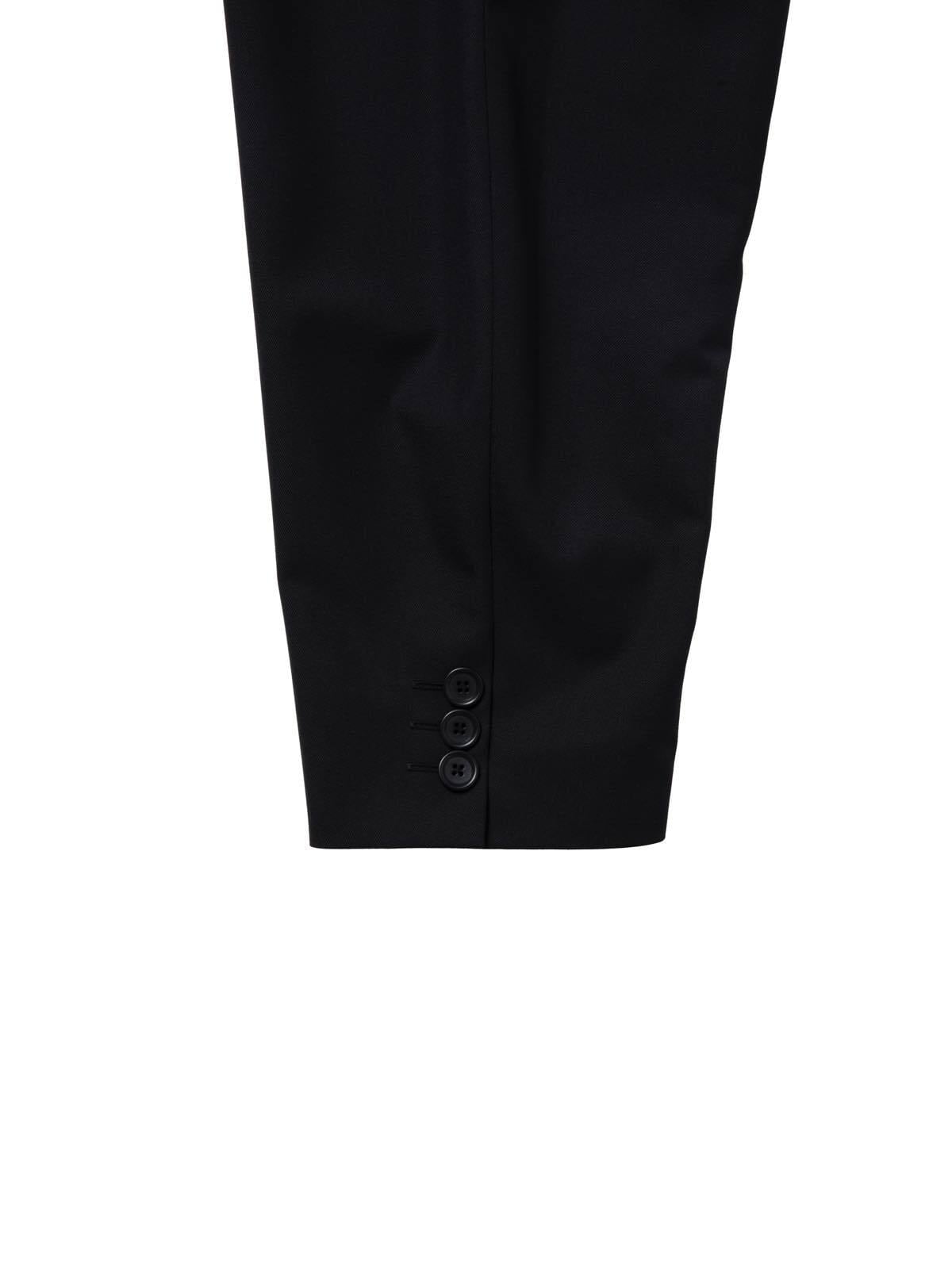 ウール、ポリエステルの混紡糸の高密T/Wサキソニーを使用。クリアな光沢と程よいドレープ性を持つ。表地撥水加工。裏地に肌当たりのいいキュプラツイルを使用。ワイドシルエット