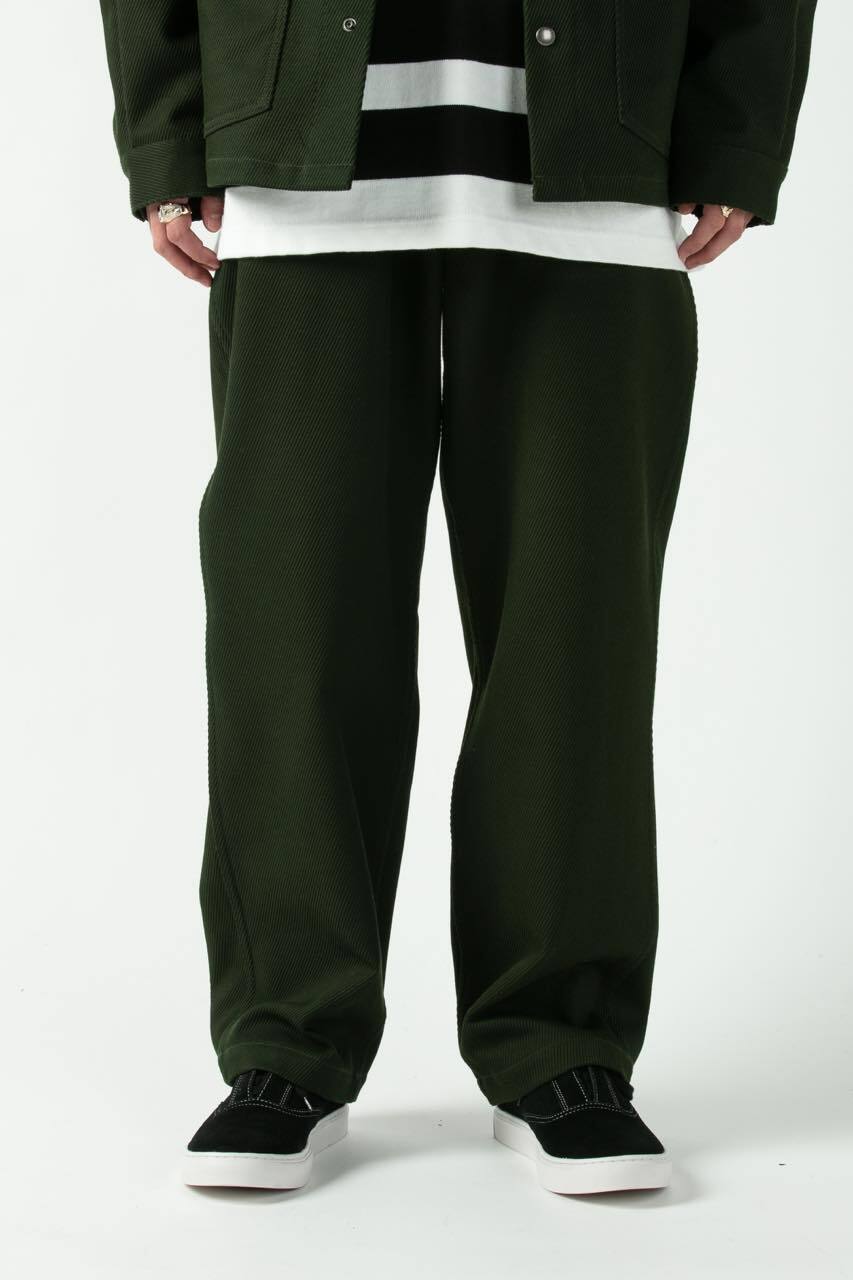 ワークパンツのディテールを採用したワイドテーパードシルエット。