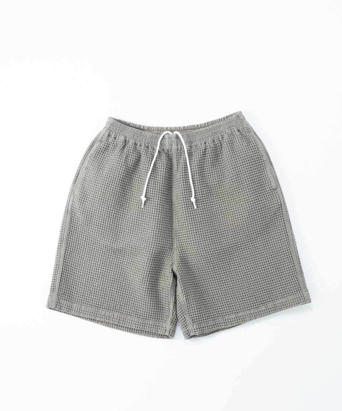 柔らかい風合いのビッグワッフル生地を使用したBig Waffle Easy Shorts。ウエストにはゴムとドローコードが付きラフな着用感。ゆったりとしたサイズ構成。