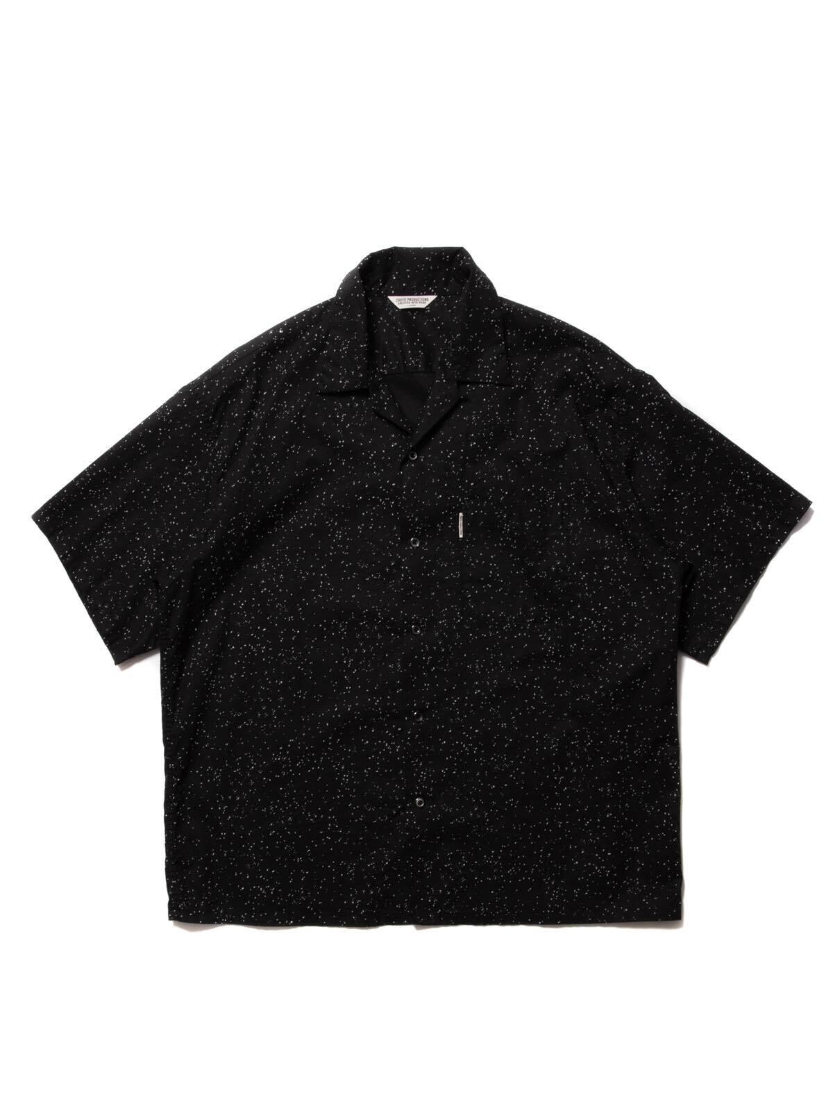 変則的なドット柄をプリントしたオリジナルのコットンリネン生地を使用したSplatter Open-Neck S/S Shirt。
